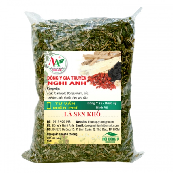 Thành phần: 100% lá sen nguyên chất được Đông Y Nghi Anh sao vàng hạ thổ theo phương pháp cổ truyền